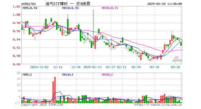 油气ETF博时(561760)跌1.39%,半日成交额25.23万元