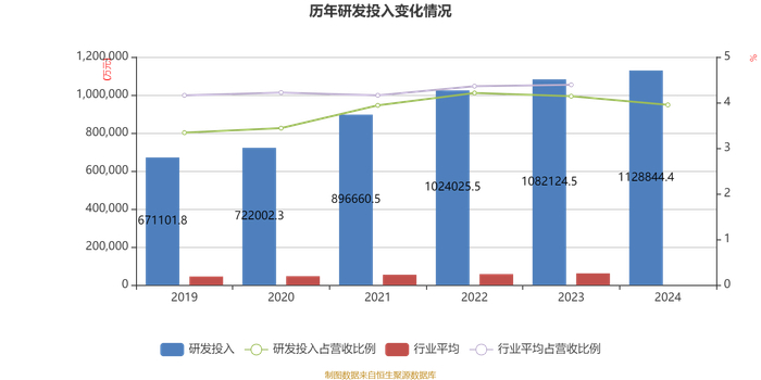 2024年全年,公司研发投入金额为112.88亿元,同比增长4.32%;研发投入占营业收入比例为3.95%,相比上年同期下降0.19个百分点。此外,公司全年研发投入资本化率为4.91%。