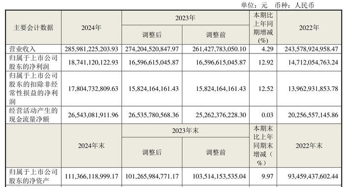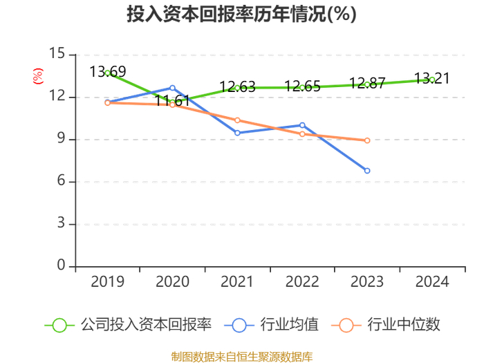 数据显示,2024年公司加权平均净资产收益率为17.7%,较上年同期上升0.46个百分点。公司2024年投入资本回报率为13.21%,较上年同期上升0.34个百分点。