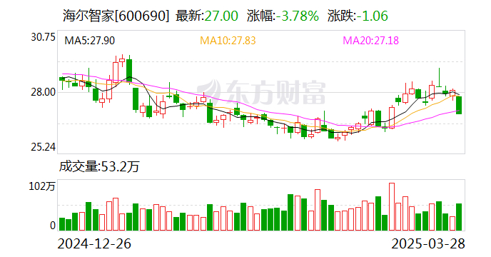 海尔智家:2024年净利润187.41亿元 同比增长12.92% 拟10派9.65元