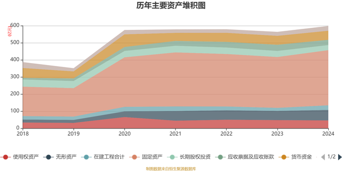 资产重大变化方面,截至2024年末,公司在建工程合计较上年末增加49.25%,占公司总资产比重上升1.31个百分点;长期股权投资较上年末减少15.75%,占公司总资产比重下降1.29个百分点;应收票据及应收账款较上年末减少14.29%,占公司总资产比重下降1.23个百分点;固定资产较上年末增加8.39%,占公司总资产比重上升1.15个百分点。