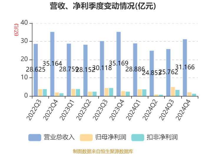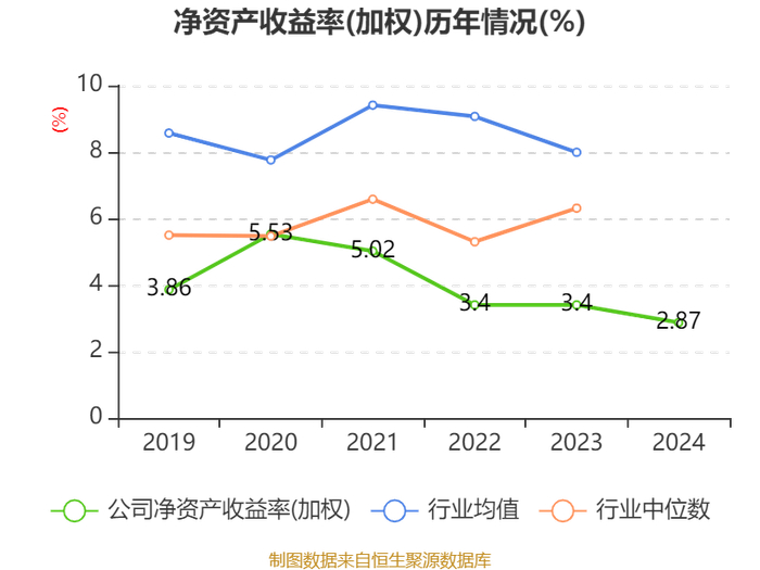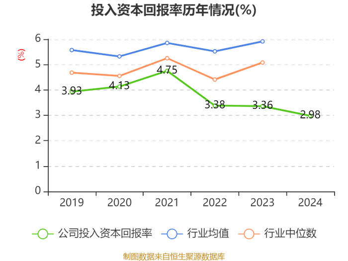 数据显示,2024年公司加权平均净资产收益率为2.87%,较上年同期下降0.53个百分点。公司2024年投入资本回报率为2.98%,较上年同期下降0.38个百分点。