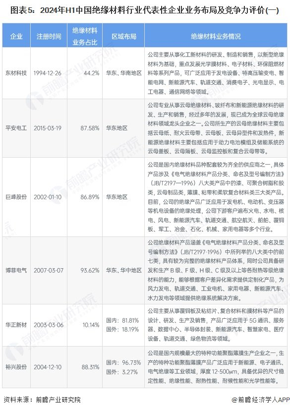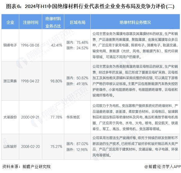 4、 中国绝缘材料行业企业业务布局及竞争力评价