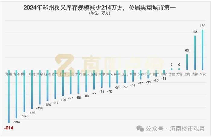 大规模的房票安置,让郑州楼市恢复活力,2024年实现去库存214万㎡,成为全国去库存最多的城市,烂尾楼规模已经大幅缩减。