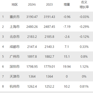 重庆是“一市堪当一省”的直辖市,属于典型的广域型政区,下辖众多郊县,与其他城市不具备可比性。
