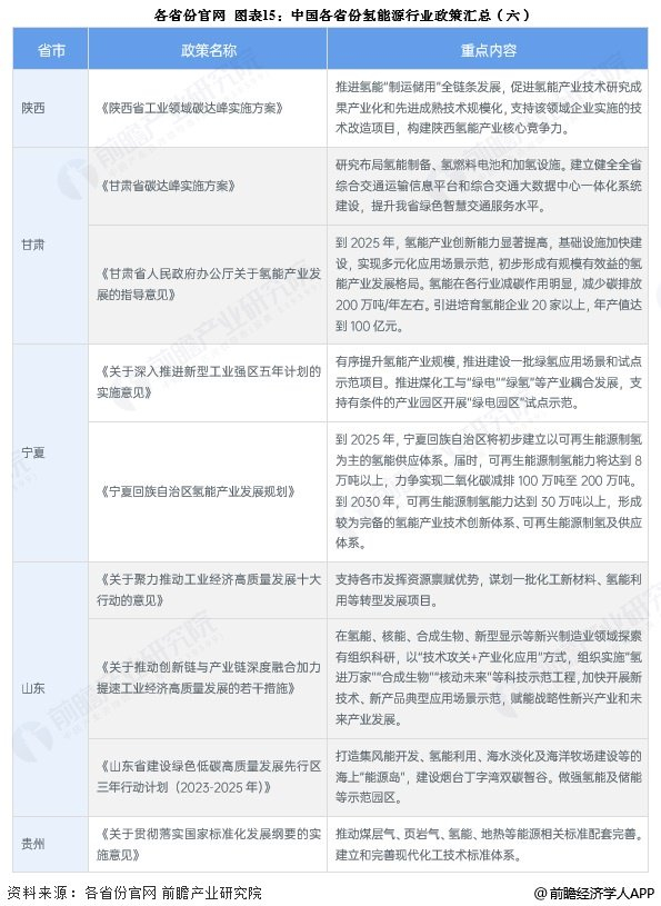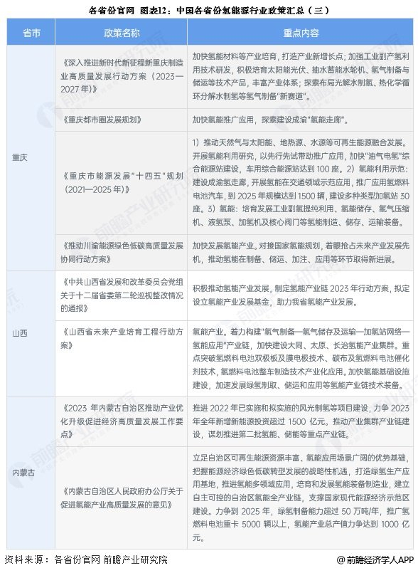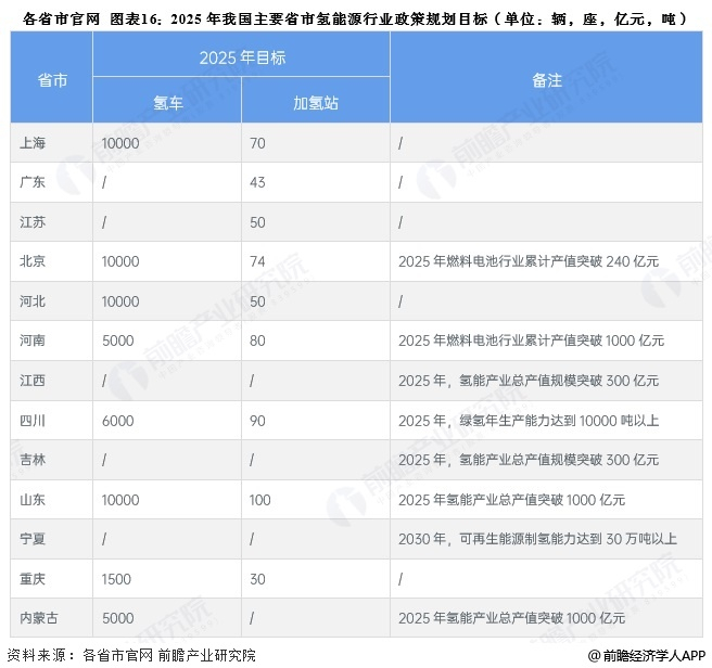 ——31省市氢能源行业发展方向解读