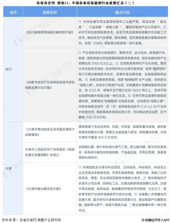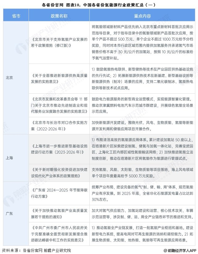 为响应国家号召,近年来,各省市陆续出台多项政策鼓励氢能行业的发展。