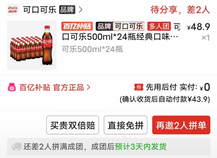 这里的特惠渠道指的其实是从网络上购买,譬如有些便利店会从开很多账号三人团购买可口可乐,一件的价差就能差出近10元;此外,还有一些依靠分发低价产品信息获取佣金的信息贩子建立的内部群,也是一些商超老板进货的渠道之一。