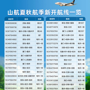 山航夏秋航季新开35条航线 助力旅客便捷出行