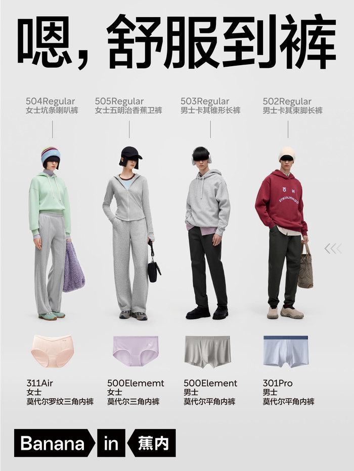 蕉内在重塑基础款的产品思路上最容易被拿来对标的就是优衣库。