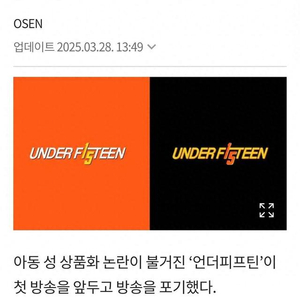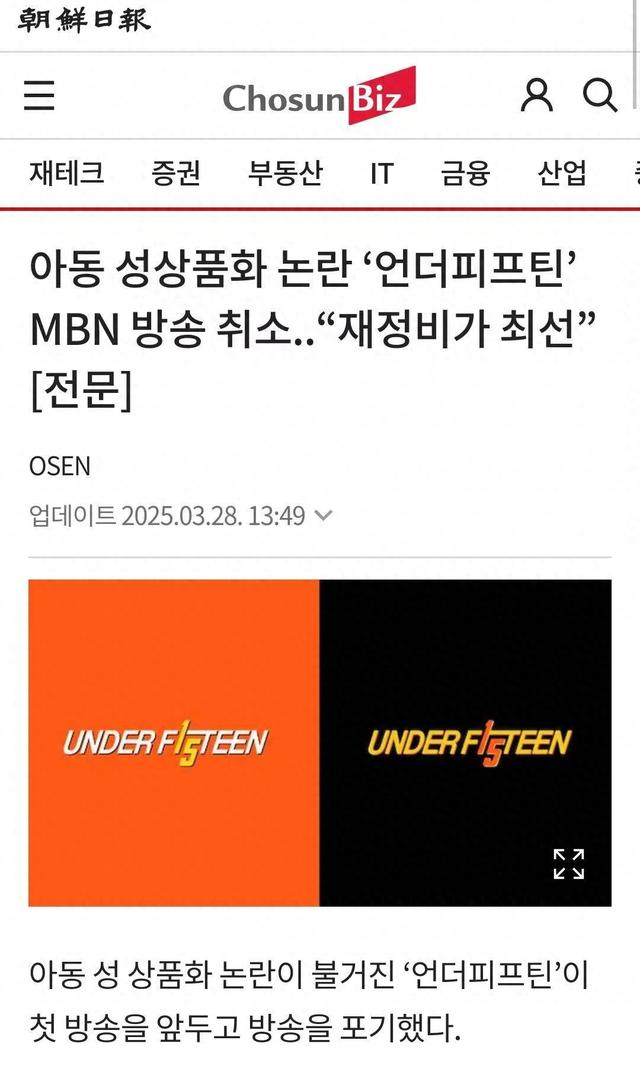 3月28日下午,韩国女团选秀节目《UNDER15》制作团队发布了一则官方声明,表示经考虑放弃选秀节目《UNDER15》的首播计划。“经过深思熟虑和讨论,我们决定取消原定于 3 月 31 日的播出计划,将重点放在保护参与者权益上,这是目前最好的行动方案。因此,MBN 电视台将不会播出该节目。我们今后将确保节目的核心内容以及参与者的诚意不会受到损害。”