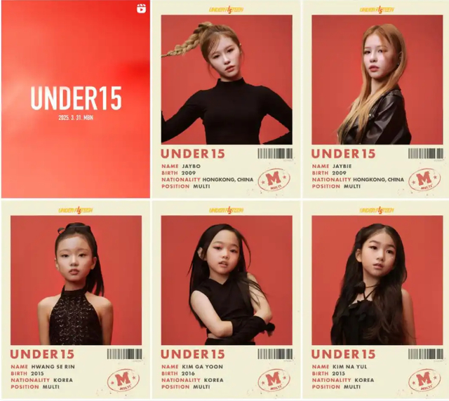 《UNDER15》于今年三月中旬公开了预告及成员海报,节目介绍将从全球范围内选拔59名15岁以下少女,将凭借外貌、表演、唱功等多方面优势,书写K-POP的崭新历史。节目制作人甚至直言,目标是打造一个平均出道年龄比NewJeans(16.4岁)更低的组合。59名参赛选手中年龄最小的仅9岁,其中还有曾出演电视剧《请回答1988》珍珠一角的演员金瑟,她出生于2011年。参赛选手来自全球多个国家,除韩国的儿童外还有来自中国、泰国、日本等国家的儿童。