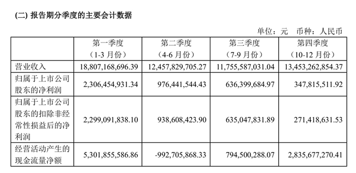 分季度看,公司业绩呈现分化趋势:一季度净利润23.06亿元,二季度净利润降至9.76亿元,三季度进一步下滑至6.36亿元,四季度仅为3.48亿元。