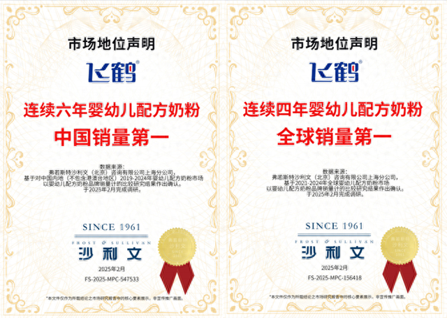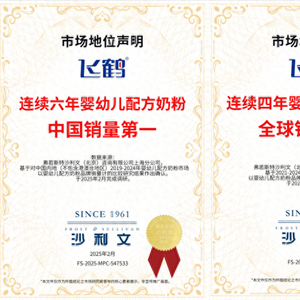 2024年,中国奶粉行业迎来结构性回暖机遇。出生率回升叠加消费者对国产奶粉信心增强及政策扶持,奶粉市场空间进一步释放。其中飞鹤市场地位稳固,据弗若斯特沙利文统计,截至2024年,飞鹤奶粉在婴幼儿配方奶粉市场连续六年中国销量第一,连续四年全球销量第一。