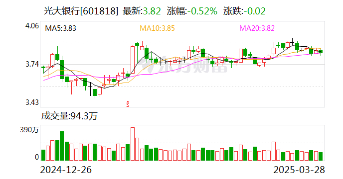 规模增长方面,截至2024年末,光大银行资产总额6.96万亿元,比上年末增长2.75%。贷款和垫款本金总额3.93万亿元,比上年末增长3.88%。客户存款余额4.04万亿元,比上年末下降1.44%,主要减少的是企业客户活期存款。