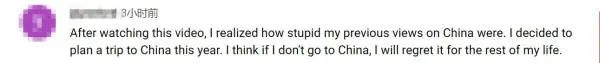 还有人已经成功被种草,决定来一场说走就走的中国之行,“看完这段视频后,我意识到自己以前对中国的看法是多么愚蠢。我决定计划今年去中国旅行。我想,如果不去中国,我会后悔一辈子。”