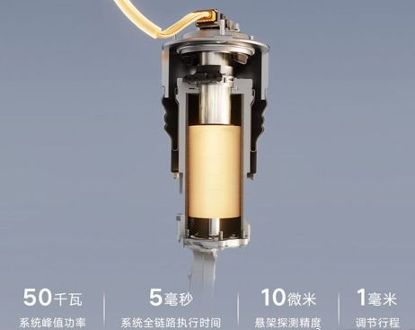 比亚迪在发布会上也列出了这套悬架的详细数据:5 毫秒的高度调节执行时间、最小可以调节 1 毫米的车身高度、对车身高度的变化可以感知到最低 10 微米。四个电机加起来,总共有 50kW 的输出功率。