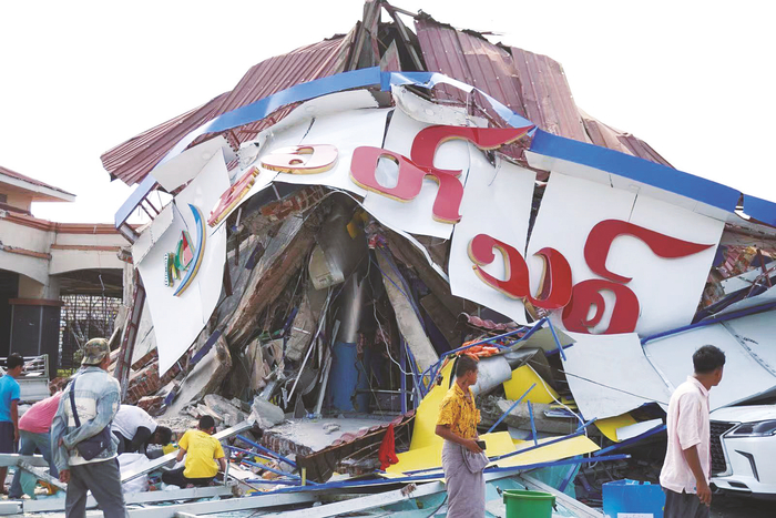 昨日在缅甸内比都拍摄的地震后受损的建筑。 本版图片均由新华社发