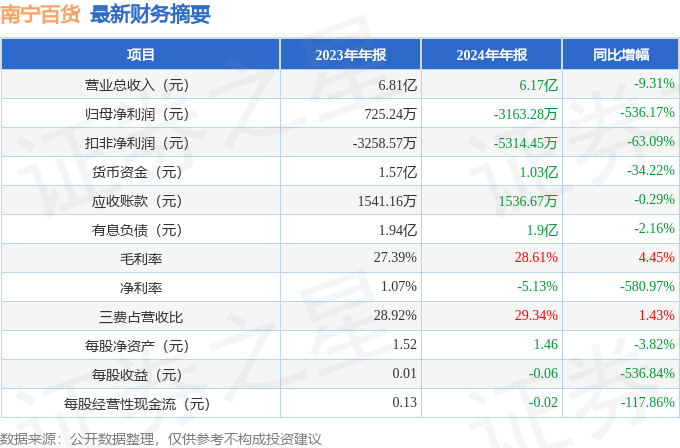 南宁百货2024年年报简析:净利润减536.17%,短期债务压力上升