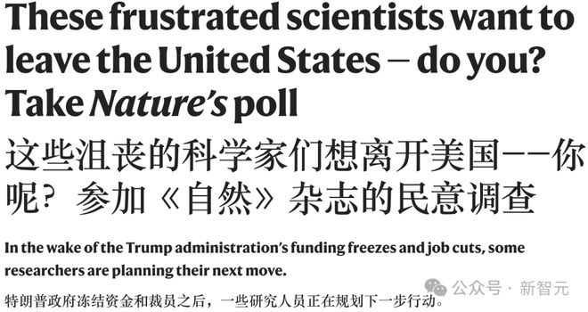 根据Nature的调查,约1200名美国科学家表示,他们正在考虑离开美国,首选欧洲和加拿大。