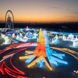 2月26日,游客在哈尔滨冰雪大世界园区内游玩。新华社 资料图