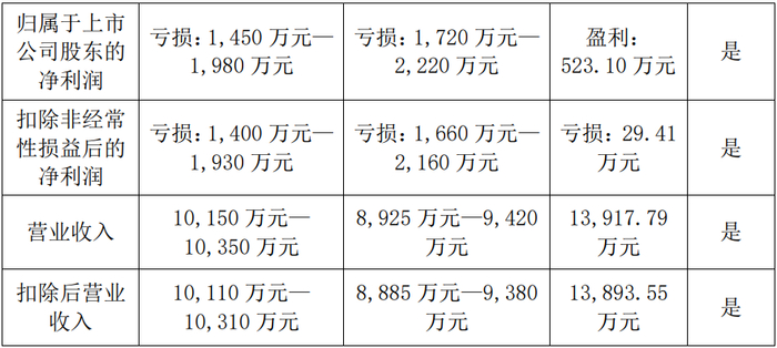 扣除后营业收入不足1亿元