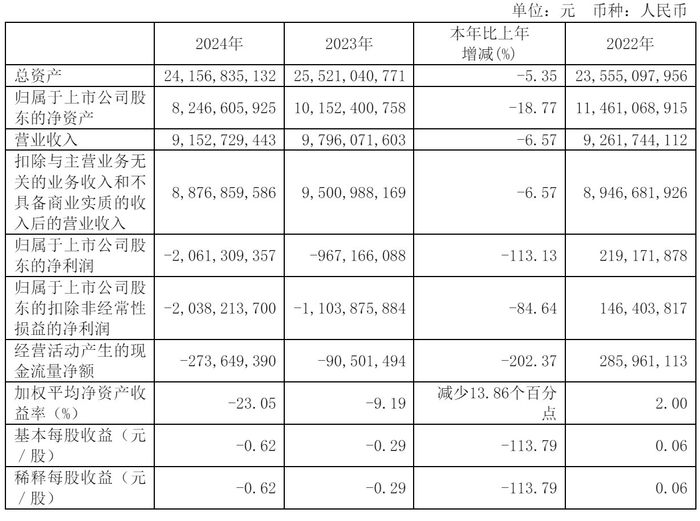 用友网络2024年净亏损为20.61亿元,上年同期的净亏损为9.67亿元;扣非后净亏损为20.38亿元,上年同期的扣非后净亏损为11亿元。