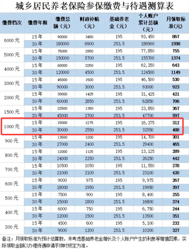 个人按最低1000元标准,交15年,就要15000元。也就是说14个月就能回本,可以说是相当划算。
