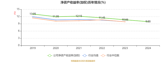 数据显示,2024年公司加权平均净资产收益率为9.88%,较上年同期下降0.78个百分点。
