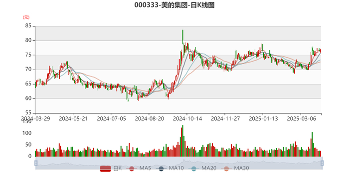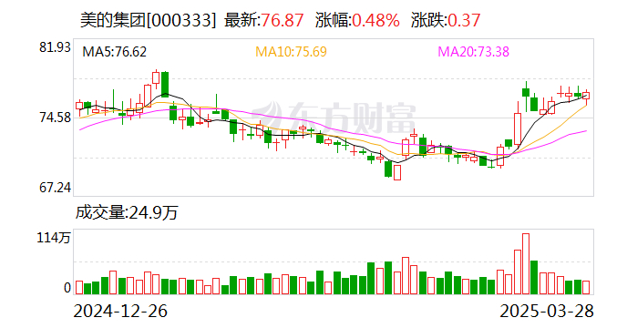 年报显示,2024年末的公司十大流通股东中,持股最多的为美的控股有限公司,占比28.333%。在具体持股比例上,美的控股有限公司、香港中央结算有限公司、HKSCC NOMINEES LIMITED、中国证券金融股份有限公司、中央汇金资产管理有限责任公司、黄健、华泰柏瑞沪深300交易型开放式指数证券投资基金、易方达沪深300交易型开放式指数发起式证券投资基金、栗建伟、华夏沪深300交易型开放式指数证券投资基金持股有所下降。