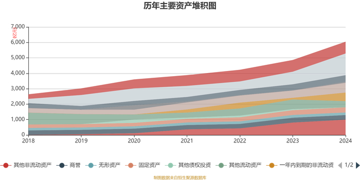 资产重大变化方面,截至2024年末,公司一年内到期的非流动资产较上年末增加415.51%,占公司总资产比重上升6.96个百分点;货币资金较上年末增加71.92%,占公司总资产比重上升6.43个百分点;其他流动资产较上年末减少36.44%,占公司总资产比重下降6.33个百分点;商誉较上年末减少4.14%,占公司总资产比重下降1.45个百分点。