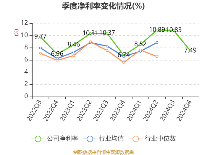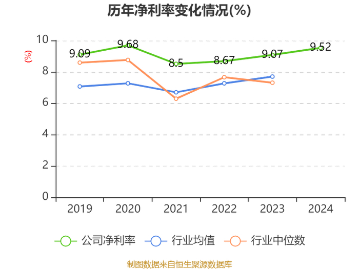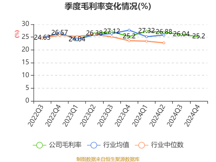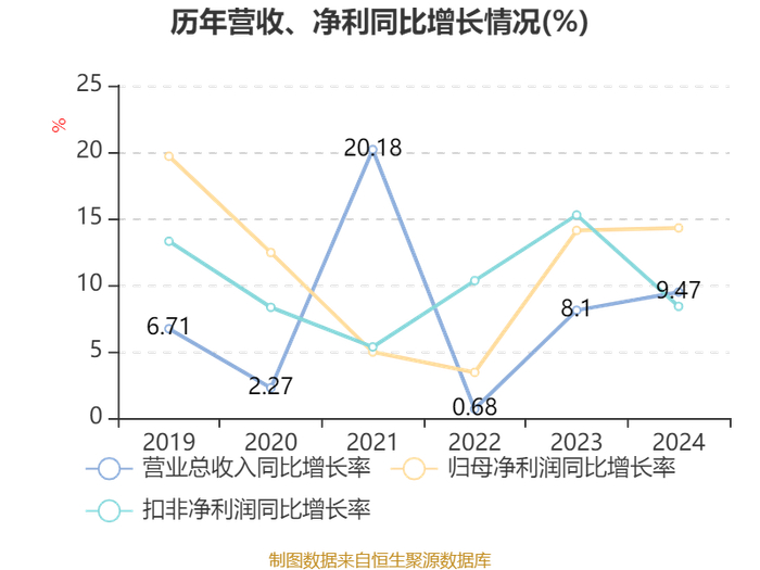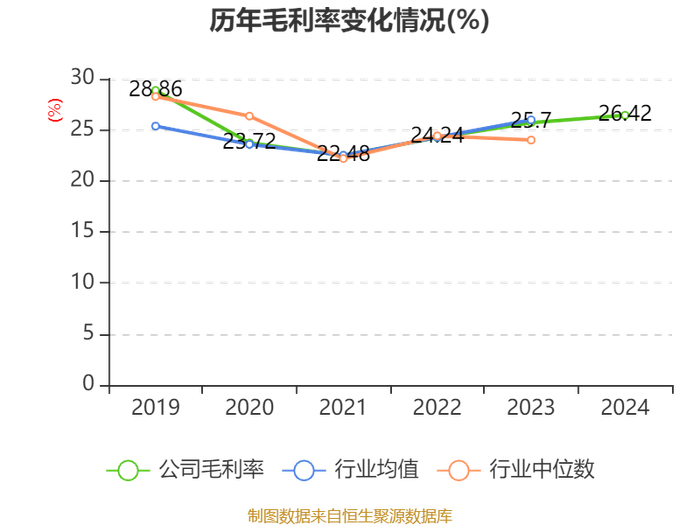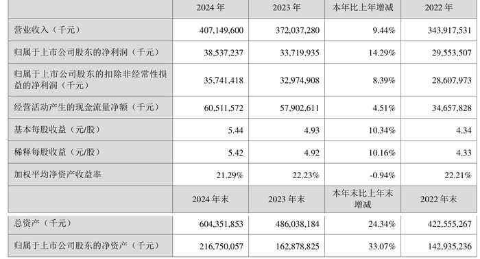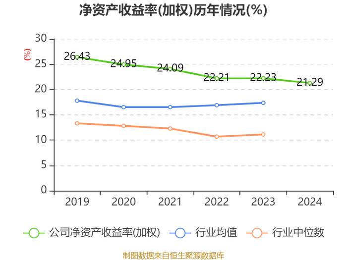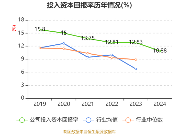 数据显示,2024年公司加权平均净资产收益率为21.29%,较上年同期下降0.94个百分点。公司2024年投入资本回报率为10.88%,较上年同期下降1.95个百分点。