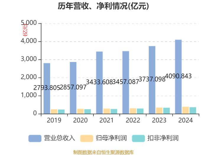 2024年全年,公司研发投入金额为162.33亿元,同比增长11.31%;研发投入占营业收入比例为3.99%,相比上年同期上升0.07个百分点。