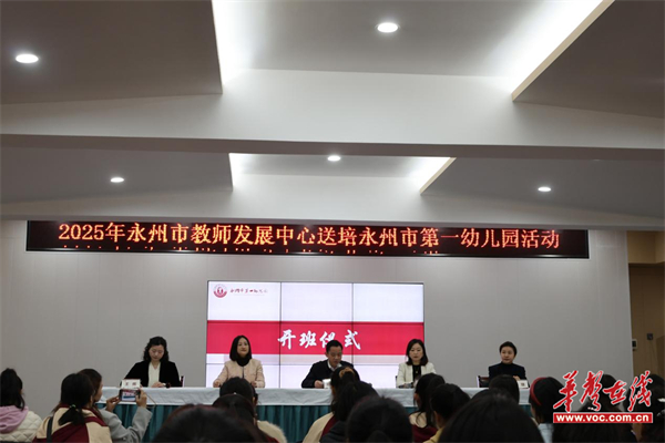 华声在线3月29日讯(通讯员 钱敏)为深化幼儿园办园理念,提升幼儿教师专业素养与实践能力,3月28日,永州市教师发展中心在永州市第一幼儿园组织开展“聚焦办园思想,强化研训效能”主题送培活动。永州市第一幼儿园全体教师及各县区幼儿园园长、骨干教师共百余人参加。