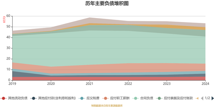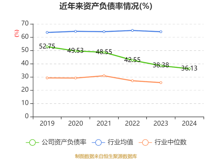 负债重大变化方面,截至2024年末,公司合同负债较上年末减少8.65%,占公司总资产比重下降2.12个百分点;应付职工薪酬较上年末减少17.59%,占公司总资产比重下降1.13个百分点;应付票据及应付账款较上年末增加18.49%,占公司总资产比重上升0.56个百分点;其他应付款(含利息和股利)较上年末增加29.64%,占公司总资产比重上升0.39个百分点。