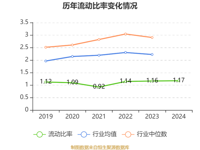 2024年,公司流动比率为1.17,速动比率为1.04。