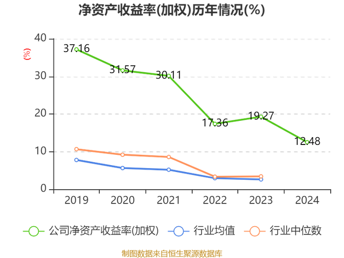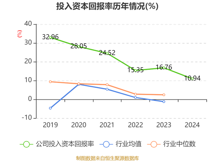 数据显示,2024年公司加权平均净资产收益率为12.48%,较上年同期下降6.79个百分点。公司2024年投入资本回报率为10.94%,较上年同期下降5.82个百分点。