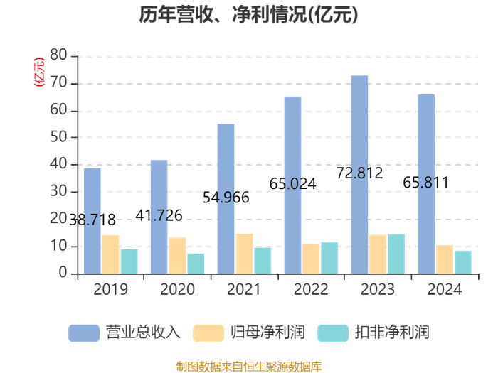 中证智能财讯恒生电子(600570)3月29日披露2024年年度报告。2024年,公司实现营业总收入65.81亿元,同比下降9.62%;归母净利润10.43亿元,同比下降26.75%;扣非净利润8.34亿元,同比下降42.39%;经营活动产生的现金流量净额为8.68亿元,同比下降31.19%;报告期内,恒生电子基本每股收益为0.55元,加权平均净资产收益率为12.48%。公司2024年度分配预案为:拟向全体股东每10股派现1元(含税)。