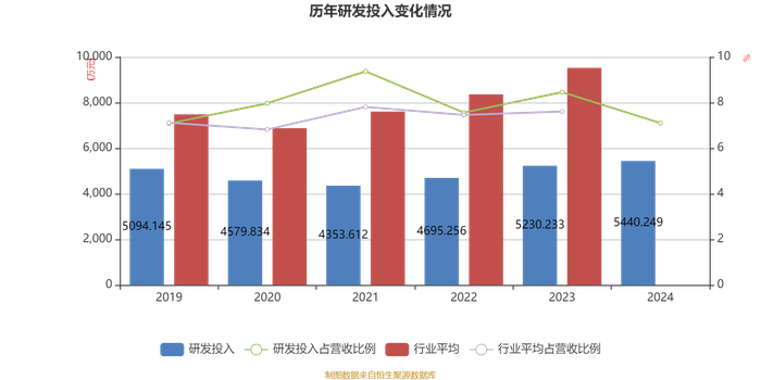 2024年全年,公司研发投入金额为5440.25万元,同比增长4.02%;研发投入占营业收入比例为7.1%,相比上年同期下降1.36个百分点。此外,公司全年研发投入资本化率为0%。