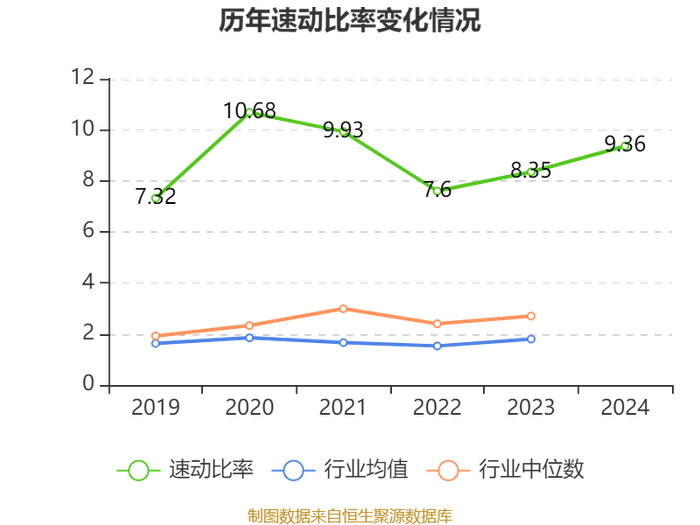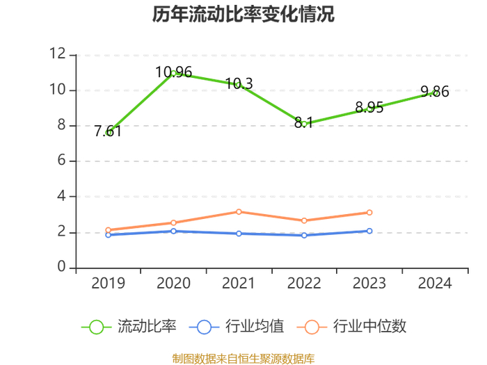 2024年,公司流动比率为9.86,速动比率为9.36。