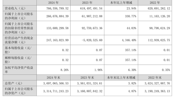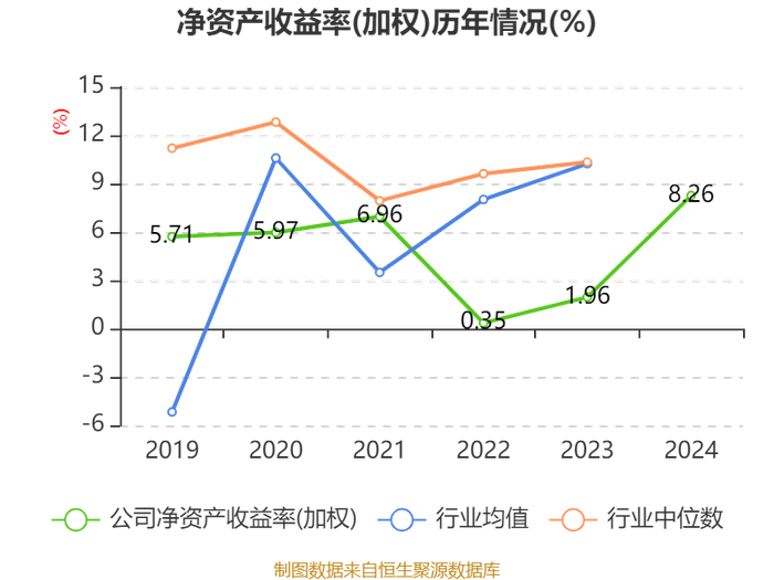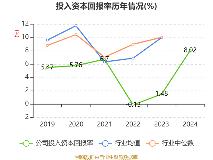 数据显示,2024年公司加权平均净资产收益率为8.26%,较上年同期上升6.3个百分点。公司2024年投入资本回报率为8.02%,较上年同期上升6.54个百分点。