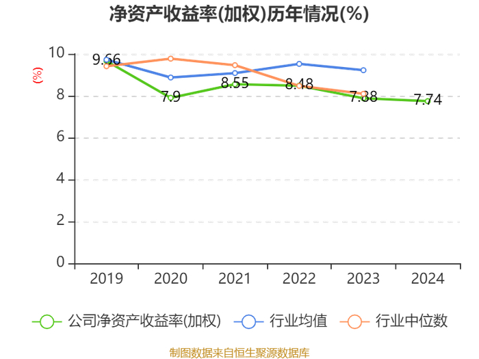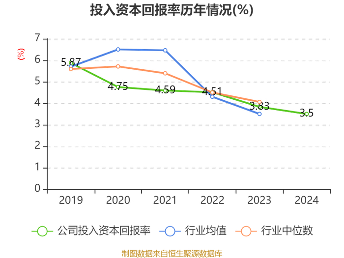 数据显示,2024年公司加权平均净资产收益率为7.74%,较上年同期下降0.14个百分点。公司2024年投入资本回报率为3.5%,较上年同期下降0.33个百分点。