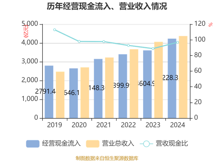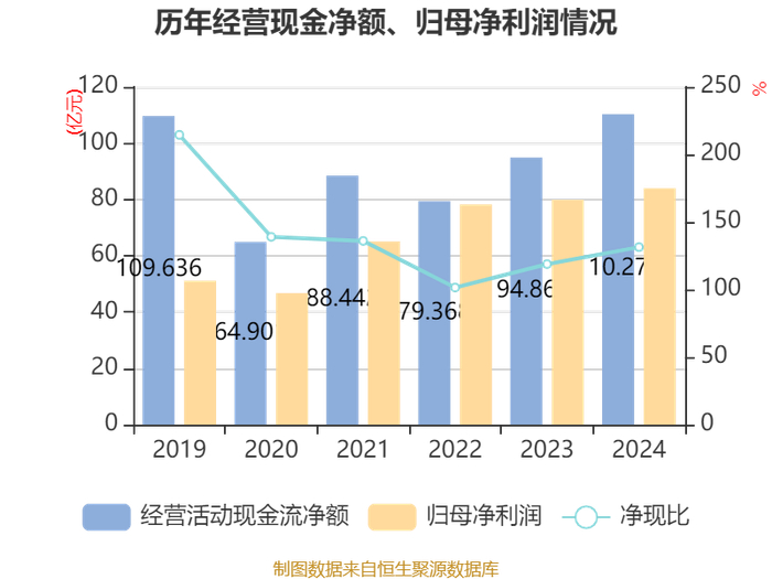 截至2024年,公司经营活动现金流净额为110.27亿元,同比增长16.25%;筹资活动现金流净额533.62亿元,同比增加173.12亿元;投资活动现金流净额-503.36亿元,上年同期为-415.28亿元。