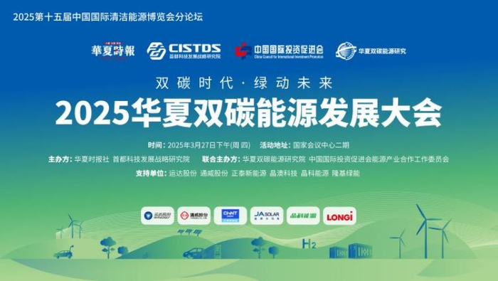3月27日,第十五届中国国际清洁能源博览会分论坛——2025华夏双碳能源发展大会在北京国家会议中心圆满举办。本次大会以“双碳时代 绿动未来”为主题,由华夏时报社、首都科技发展战略研究院(CISTDS)主办,华夏双碳能源研究院、中国国际投资促进会能源与产业工作委员会联合主办,运达股份、通威股份、正泰新能源、晶澳科技、晶科能源、隆基绿能等众多龙头企业提供支持,另外还有双良节能、恒力石化、海博思创、派能科技、中天华氢、鲁丽集团、慧居科技、同辉能源等企业参与。