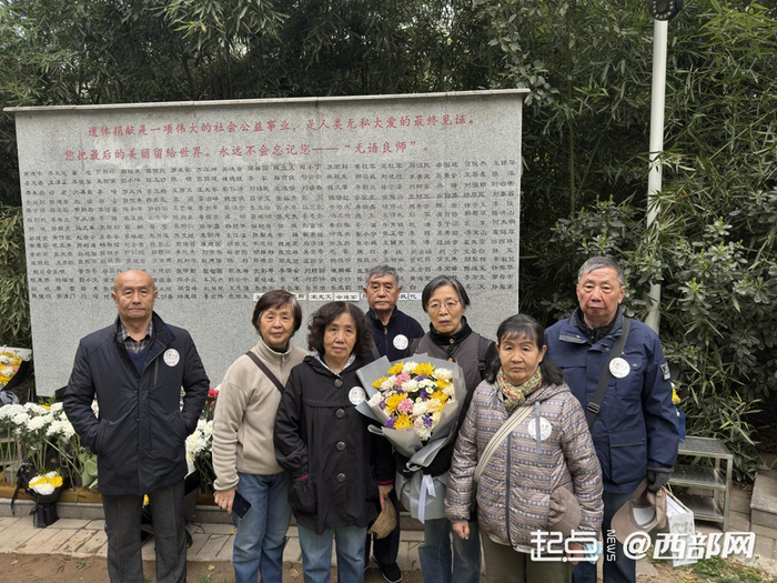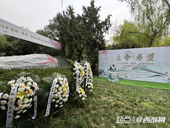 活动中,遗体捐献者张小宁的家属前来缅怀。2023年9月24日张小宁因病去世后,家属遵其遗愿完成遗体捐献。“他身体健康时就说过我们也要捐献遗体,就是能捐的都捐。每个月24号,只要我在西安,就会来看看他。”张小宁的妻子陈女士说。