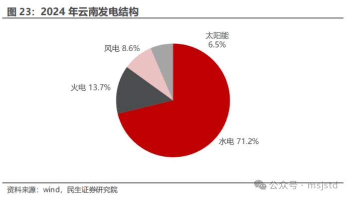 云南可再生能源占比高,公司绿电价值空间巨大。2023年云南电源结构中,水电占比高达74.2%,风光等新能源发电占比9.4%,可再生能源占比高达83.6%,电解铝碳排放量较低,绿色铝特征明显。“双碳”背景下,未来随着电解铝行业纳入碳交易,云南绿色铝优势将会凸显。