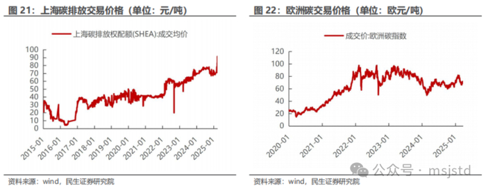 4.2碳交易方兴未艾,绿色铝价值长期价值可期国内碳交易方兴未艾。国内碳交易参考欧洲市场,政府确定配额总量,由市场交易形成碳价。2021年全国性碳交易开启,碳价开始逐步上行,目前碳价基本位于90元/吨以上,碳排放权的稀缺性逐步体现,随着电解铝等高耗能行业的纳入,碳价或将进一步上行。