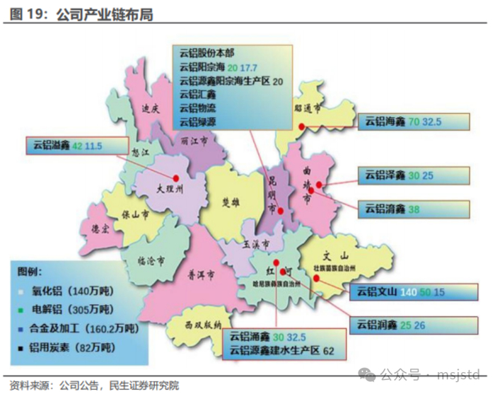 一体化布局,氧化铝采购具有优势。公司已形成氧化铝140万吨,绿色铝305万吨,铝合金及铝加工产品160万吨,炭素制品82万吨的产能规模,按去年公司293.83万吨电解铝,140.88万吨氧化铝产量测算,公司氧化铝自给率约25%。云南临近广西,广西铝土矿资源丰富,并且广西海岸线长,未来进口铝土矿也较为便利,公司氧化铝采购具有优势。