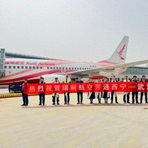 图为3月30日,瑞丽航空公司开通武汉至西宁航线。孙睿 摄