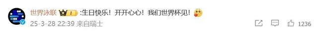 @世界泳联 在评论区留言:“生日快乐!开开心心!我们世界杯见!”
